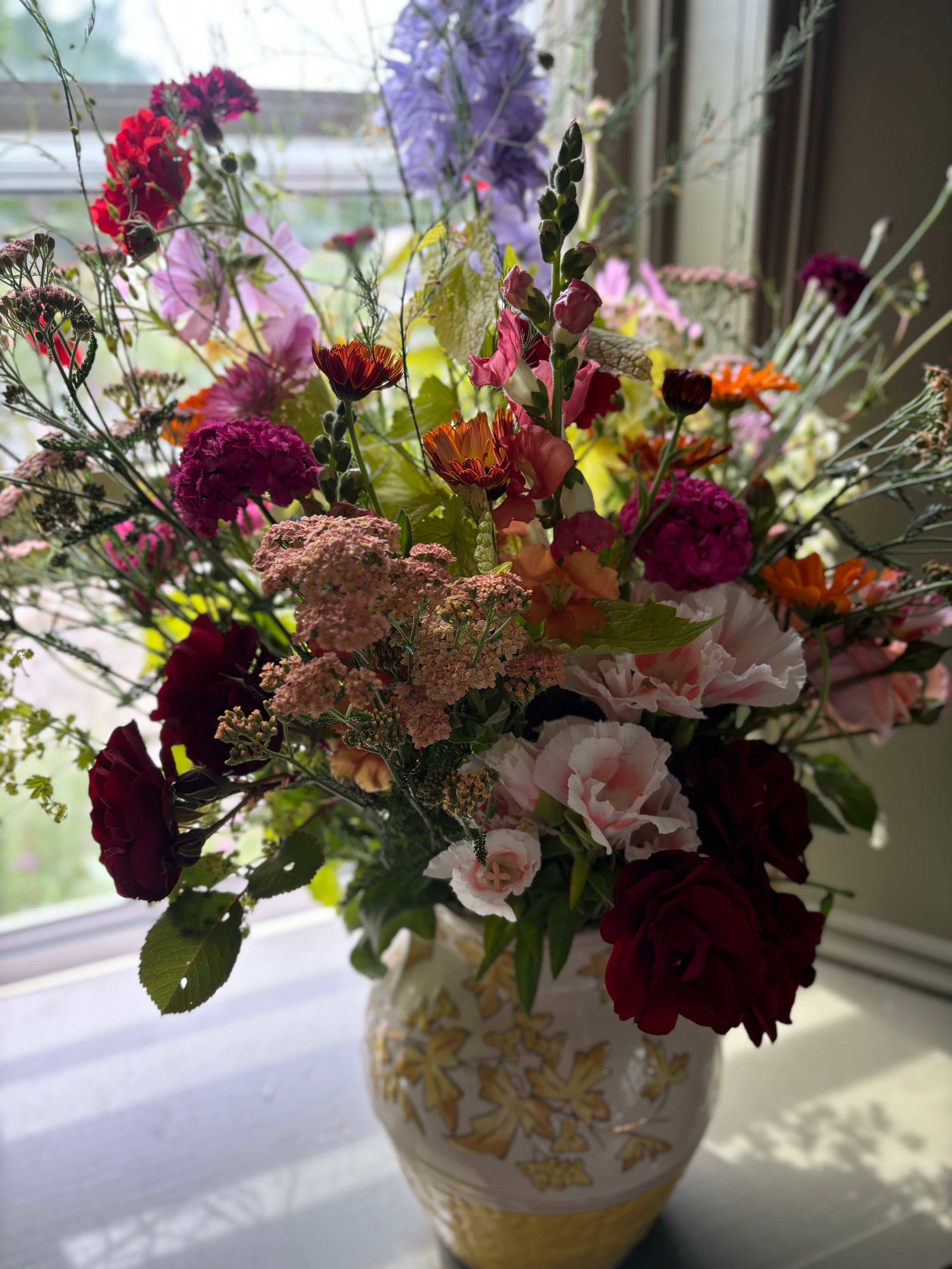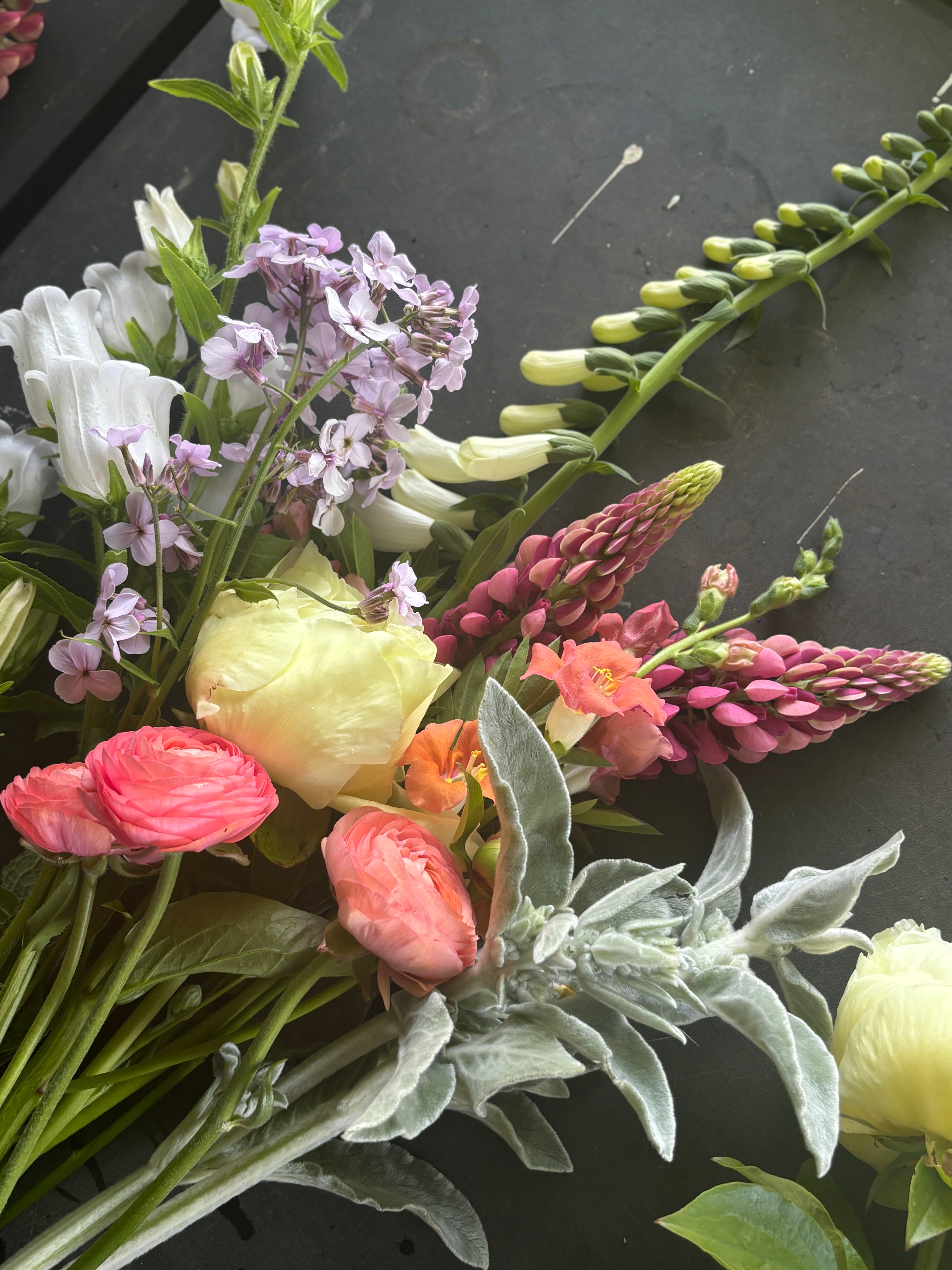 Flowers grown and sown right here in the Margarees. With half an acre of cutting gardens there is always something interesting and unique growing. From our earliest spring bulbs, to lush peonies, wild lupines and aster, high summer dahlias, zinnias, and sunflowers, our fresh flowers are available from late May until mid October.