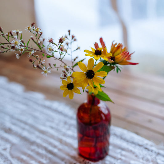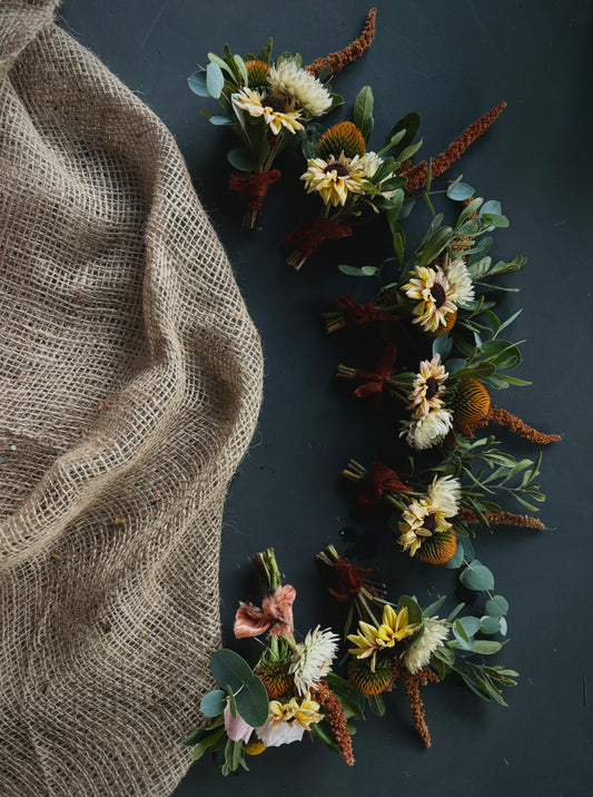 Local, seasonal and nature inspired designs. We are a small floral design studio, using exclusively what we grow here in the gardens, harvest from the wildflower meadows, and have put away in the drying studio.
