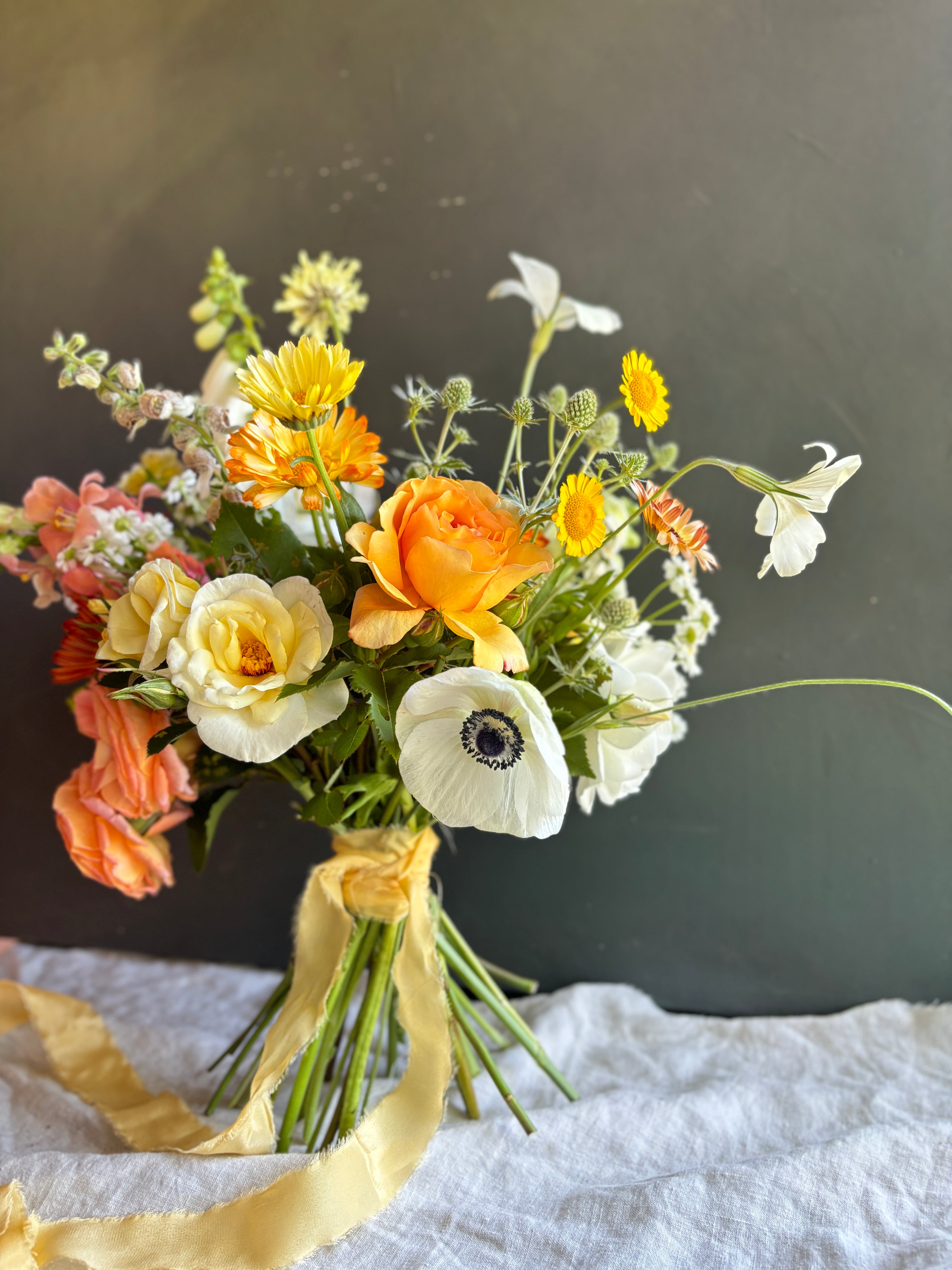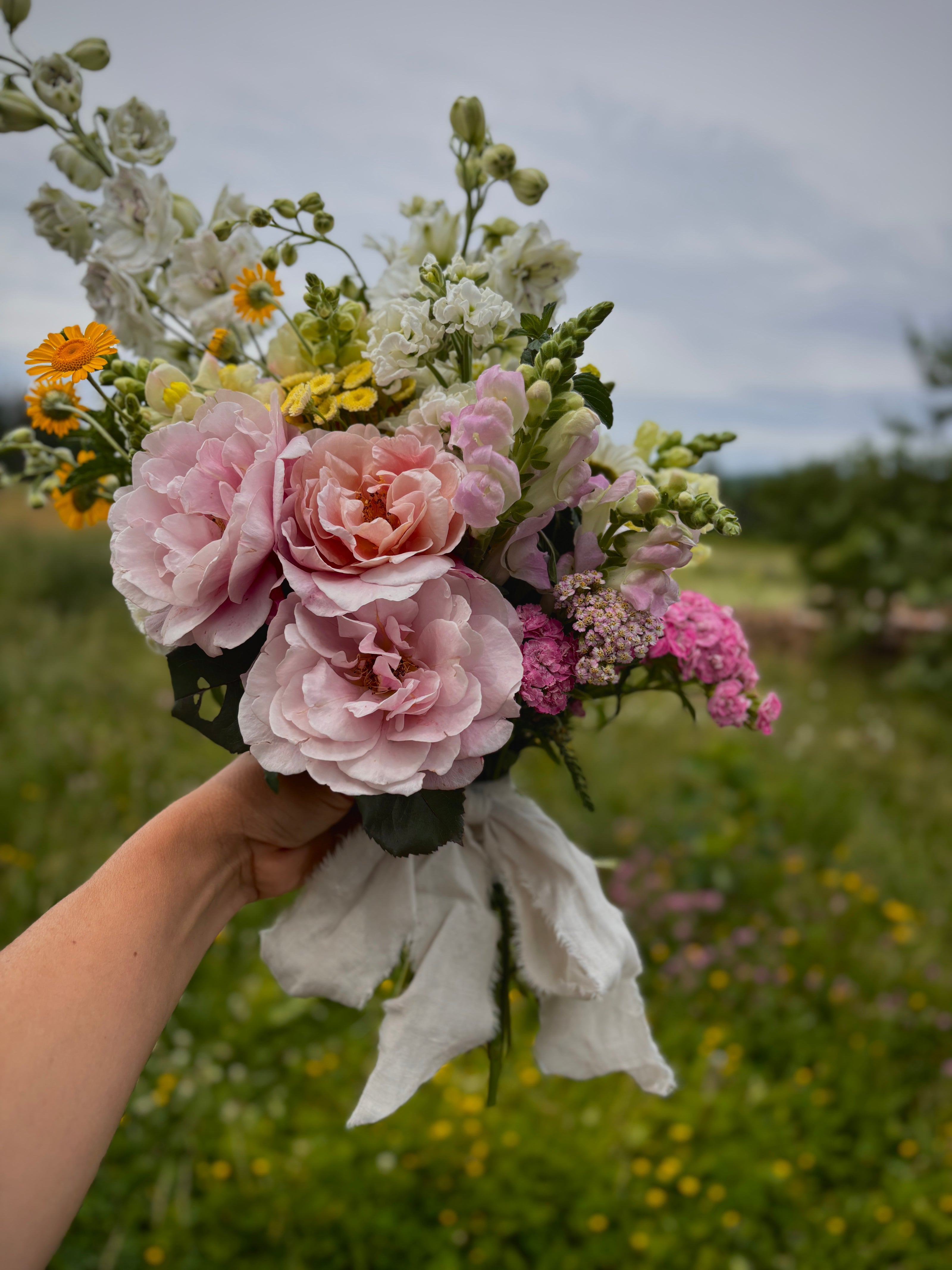 We only work with seasonal flowers that we grow here in the gardens or harvest from the wild